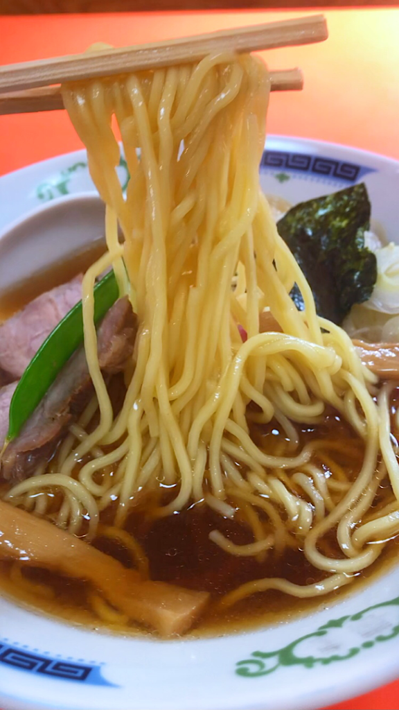 中細麺は柔らかくモッチリとした食感で、醤油スープと絶妙に絡み合っています。これぞ昭和のラーメンって感じです。