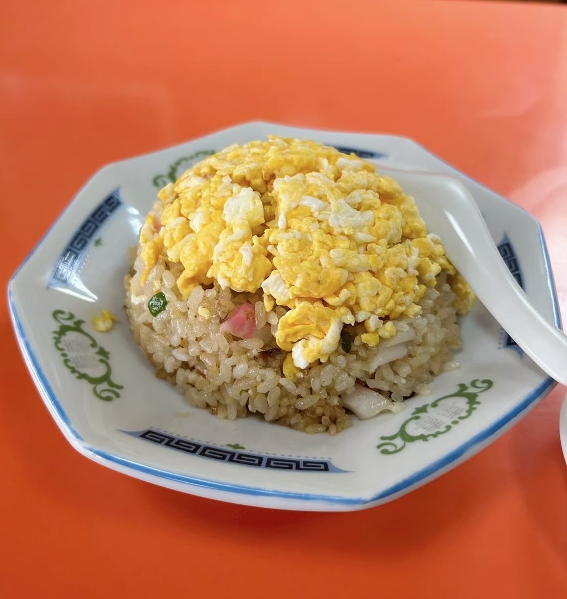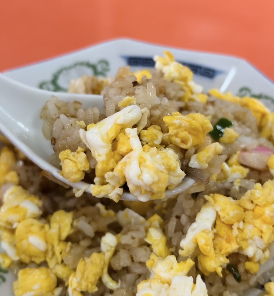 別日に玉子チャーハンを注文。卵が一面にのった美しいビジュアルです。焼き飯のような醤油風味の味わいで、パラパラの玉子そぼろを口いっぱいに頬張れば至福の瞬間!ここで坂本金八先生こと武田鉄矢さんが召し上がったと思うと感慨深いものがあります。